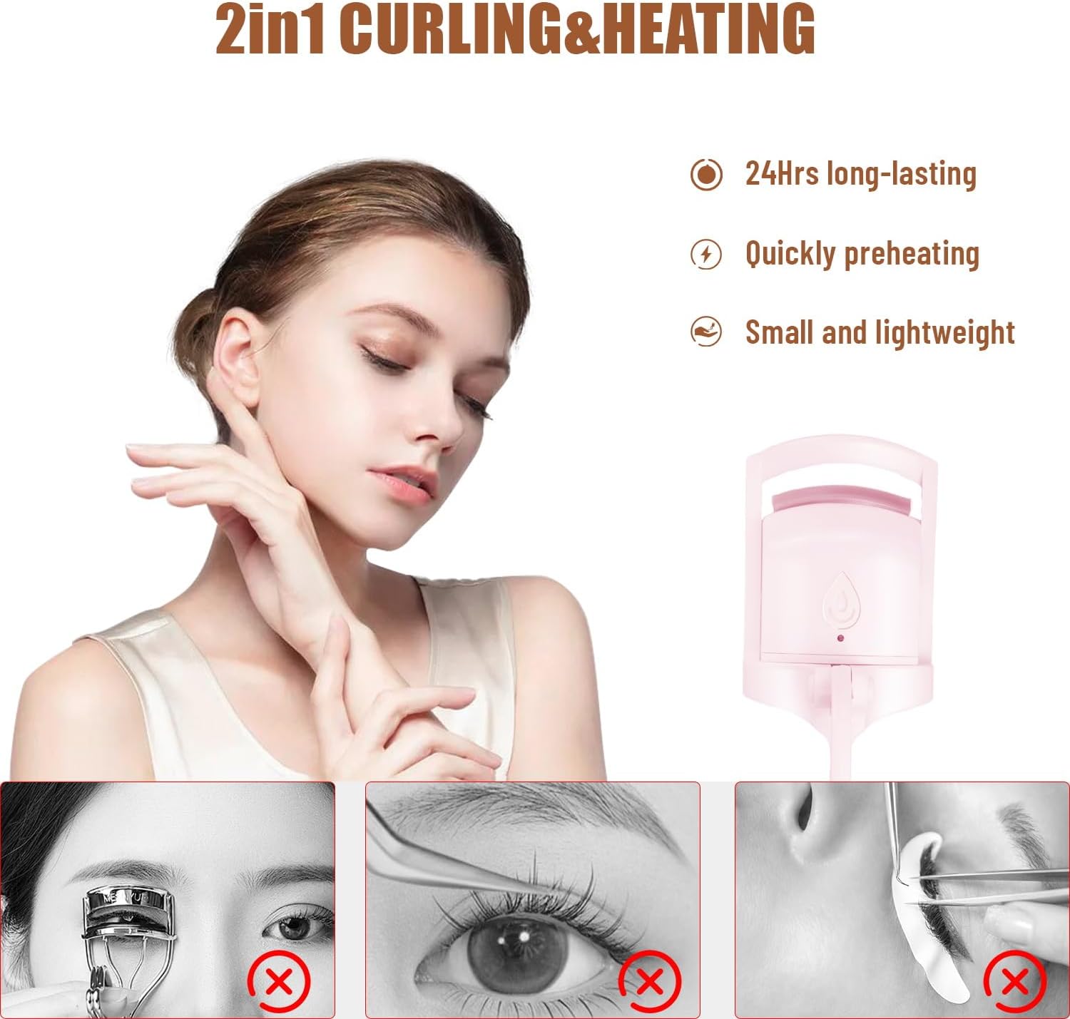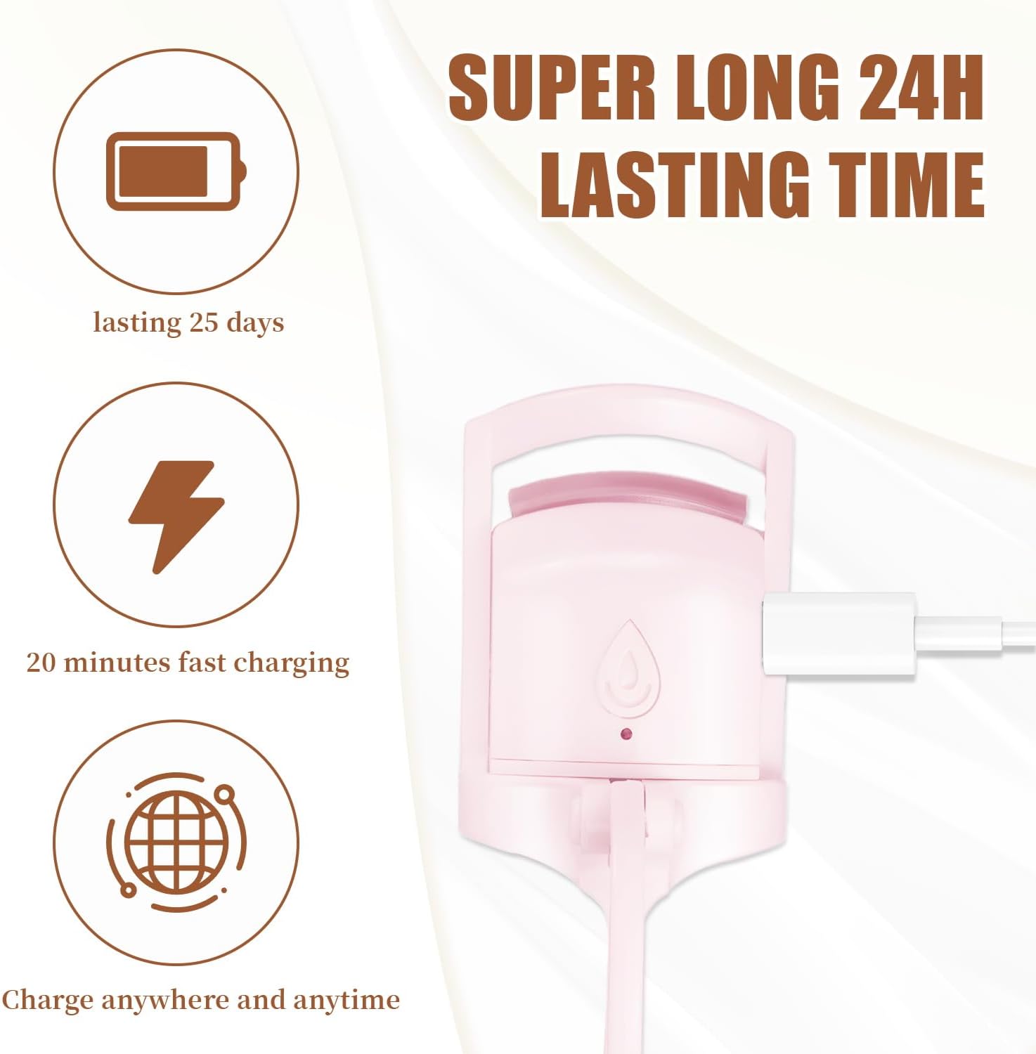 Rizador de pestañas térmico en forma de C 2025 que se calienta rápidamente en 6 segundos, rizador de pestañas eléctrico recargable para rizos de larga duración de 24 horas, rizador de pestañas seguro