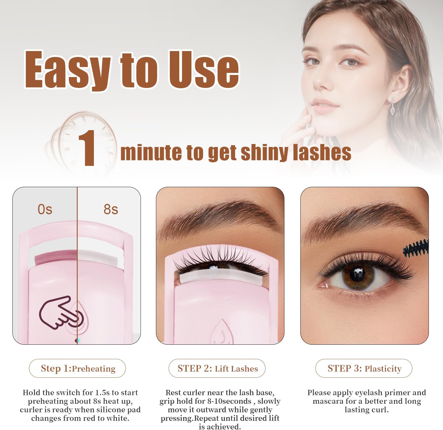 - Rápido y fácil: di adiós al tedioso y lento proceso de rizado: nuestro rizador de pestañas calentado calienta el rizador en solo 8 segundos, logrando pestañas rizadas naturales y hermosas en un abrir y cerrar de ojos, que duran 24 horas, ahorrando tiempo de maquillaje, por lo que es la herramienta perfecta para mañanas ocupadas o retoques de última hora.